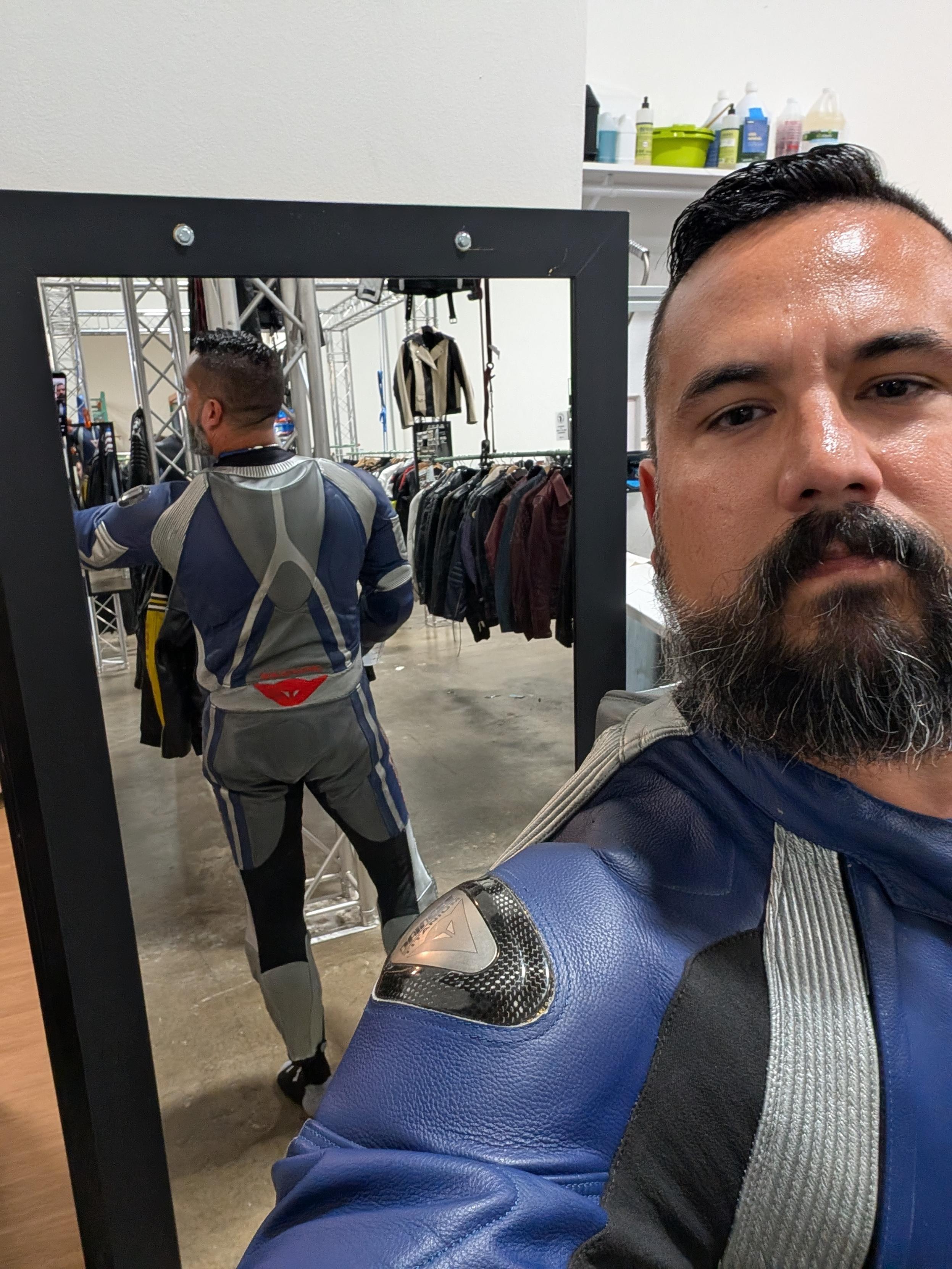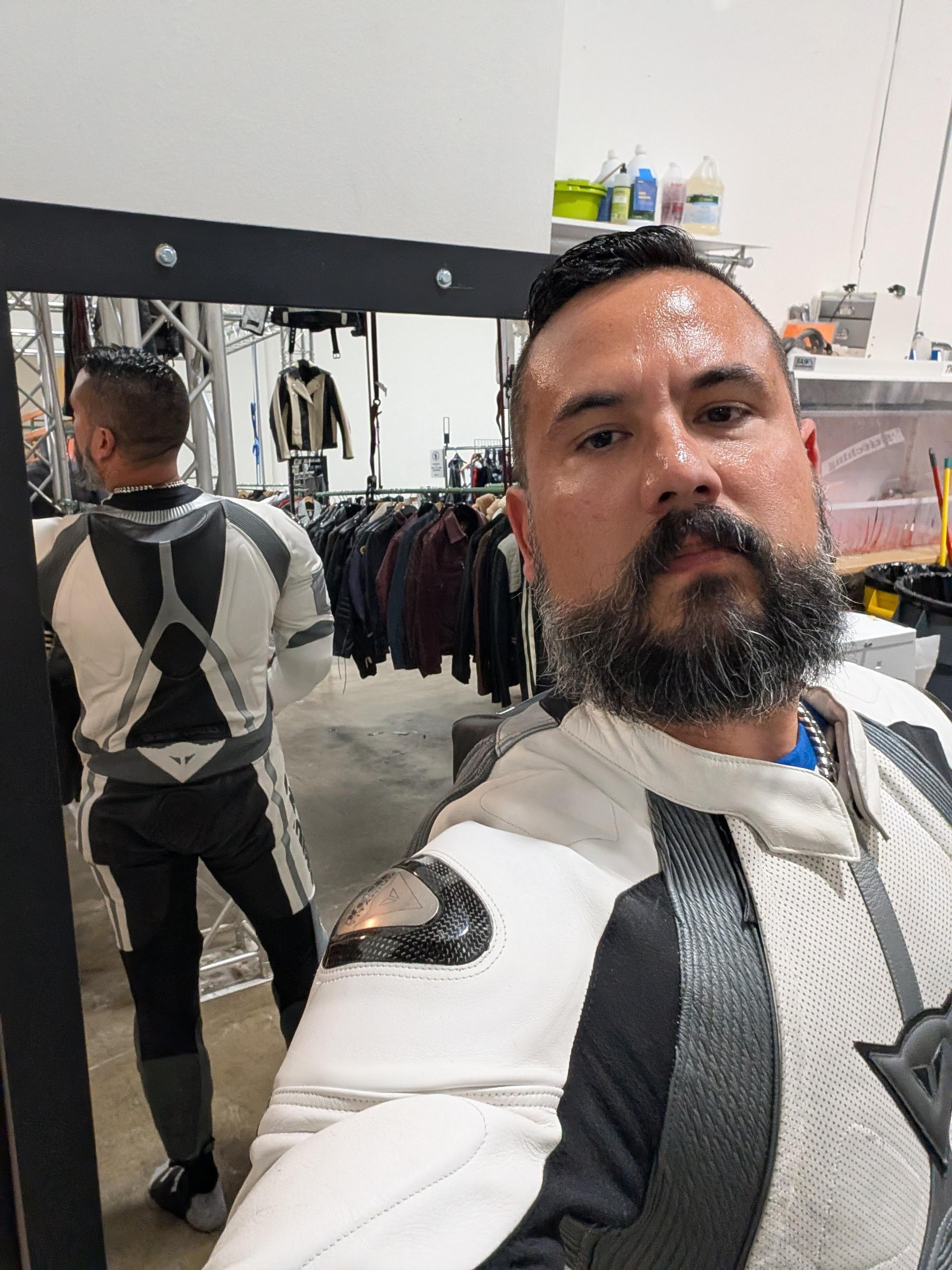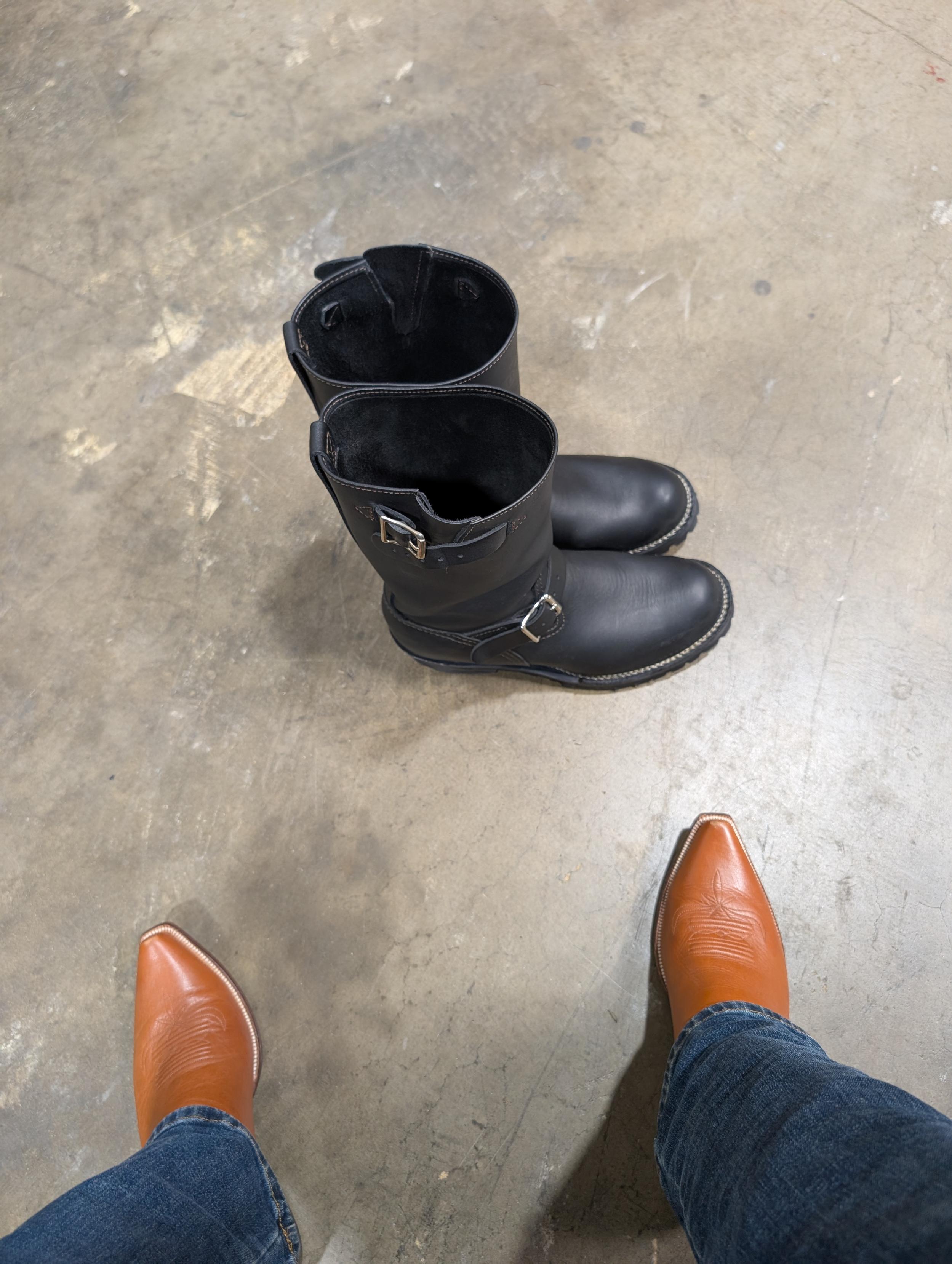 These guys at Ben Orson Leather are awesome. They even let me borrow a pair of Wescos in my size to check the hem on the chaps I'm buying