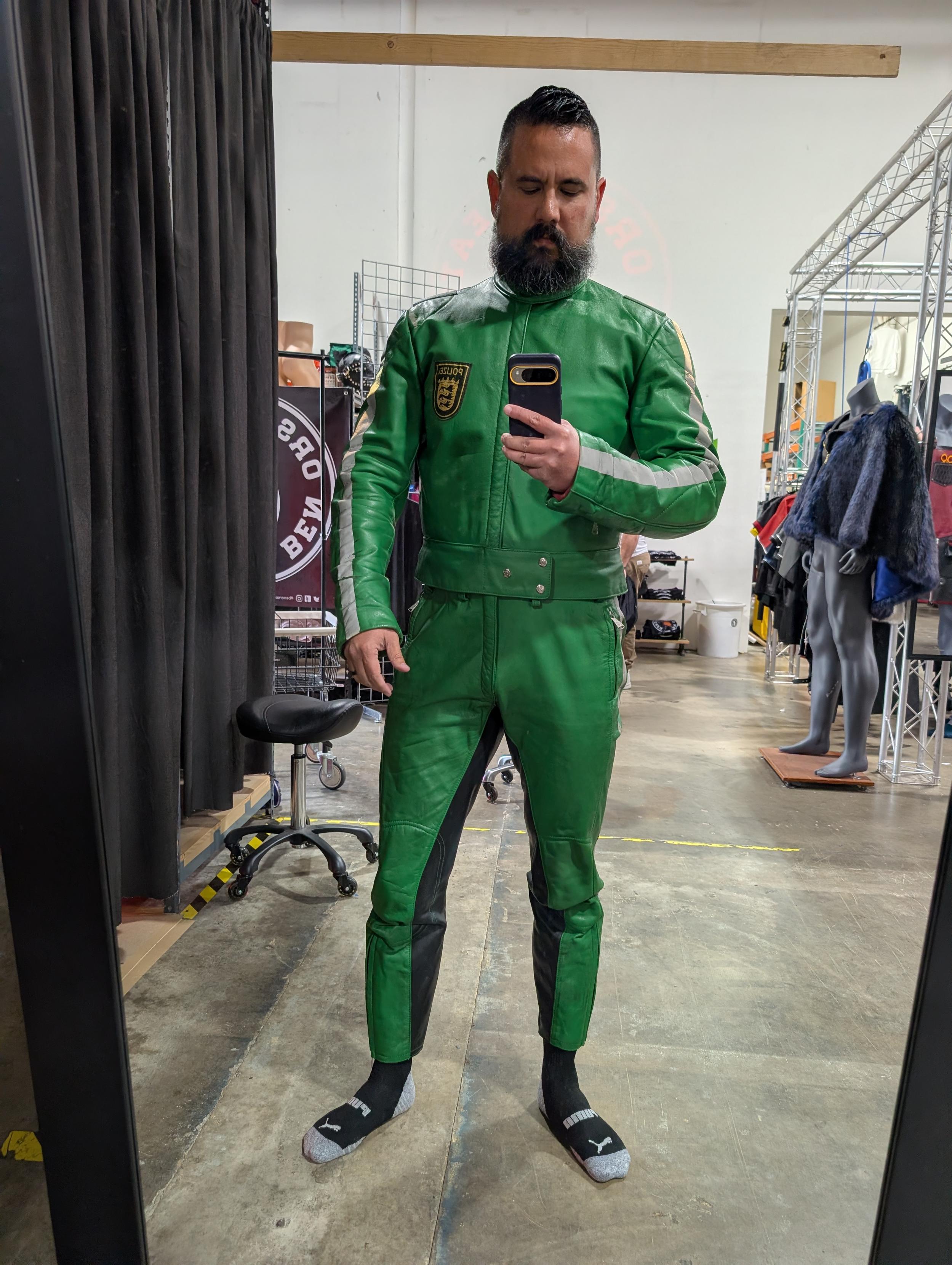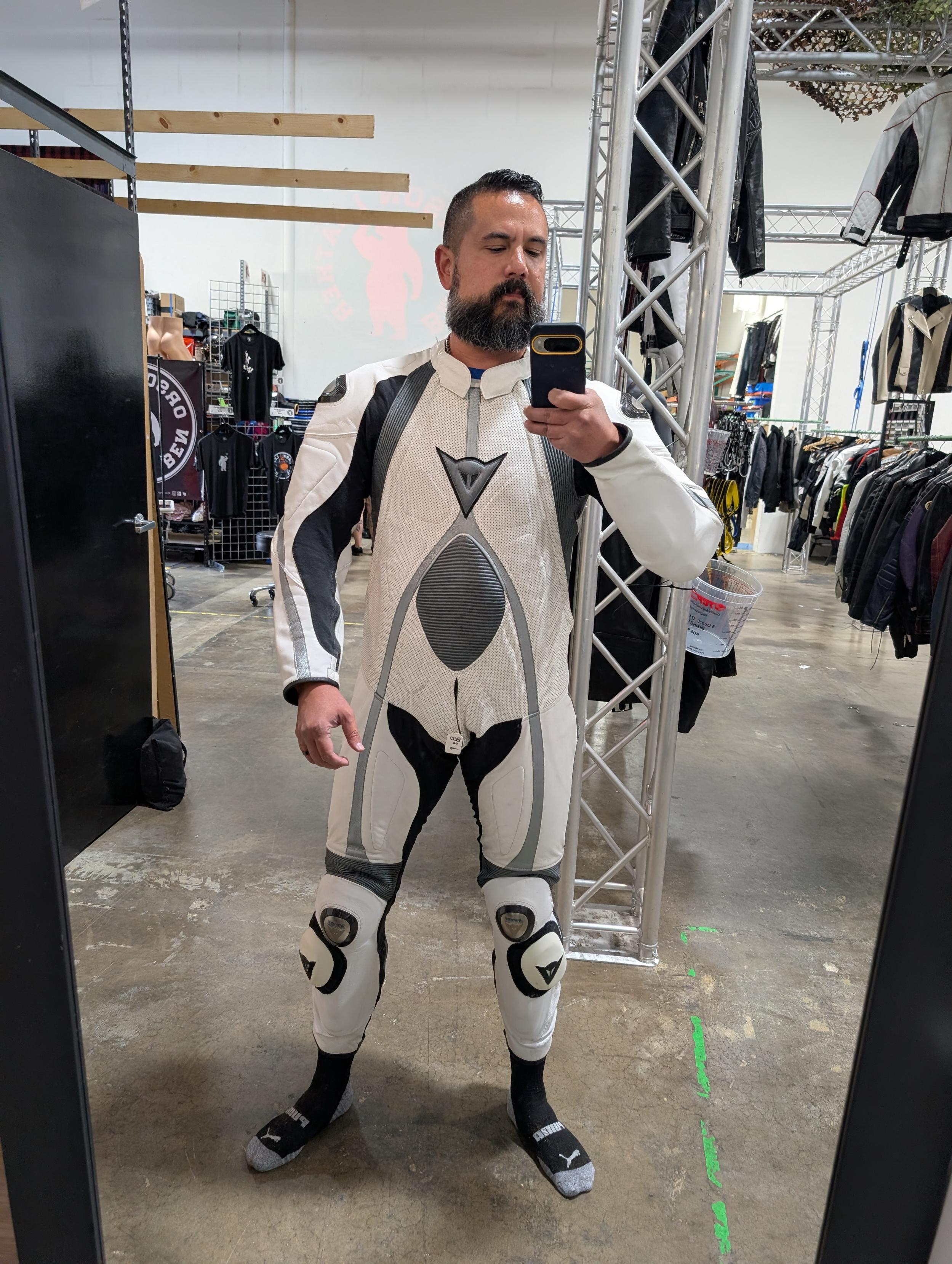 There's also this German moto cop suit that fits surprisingly well